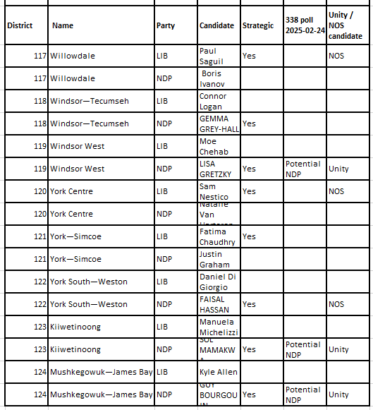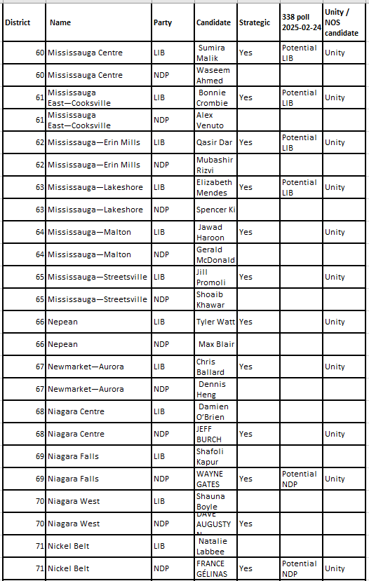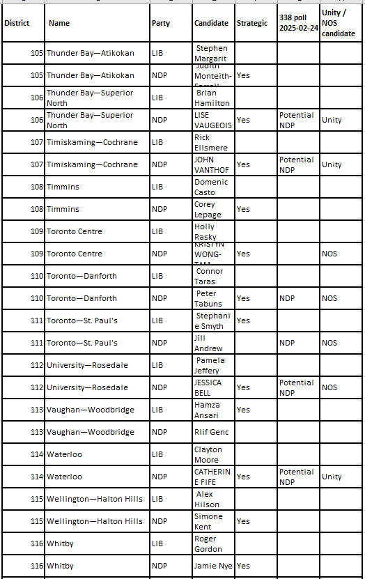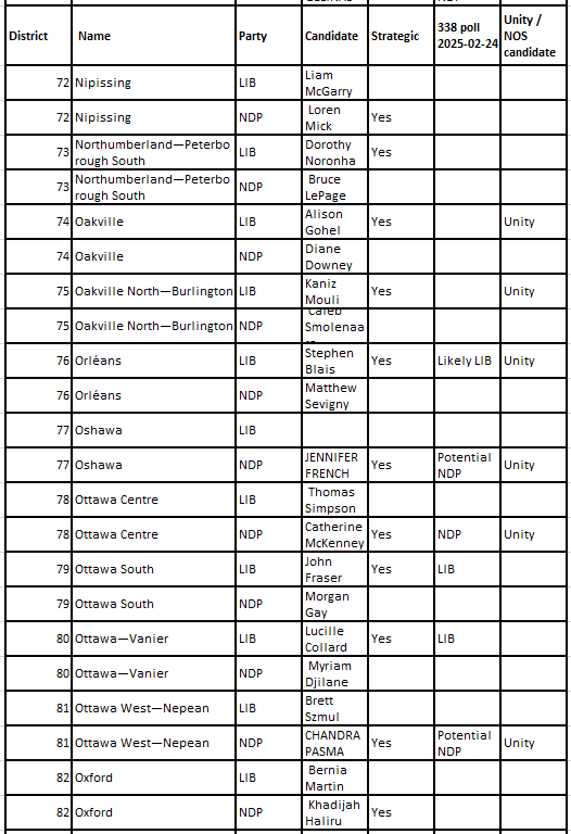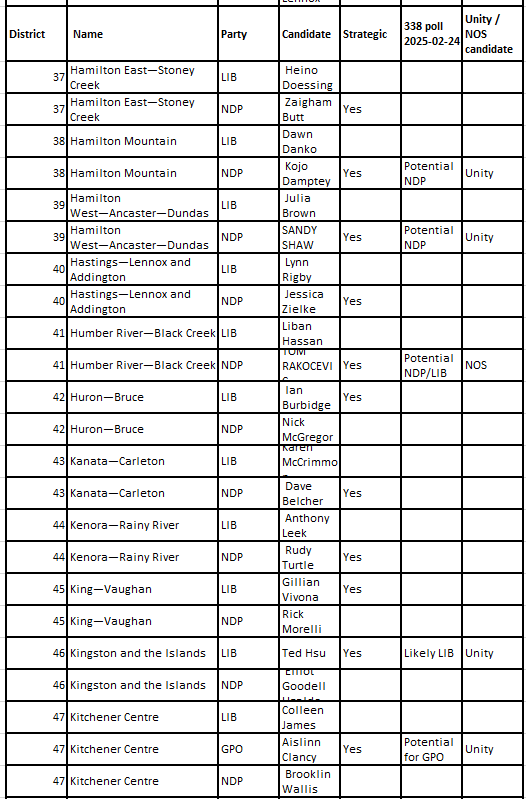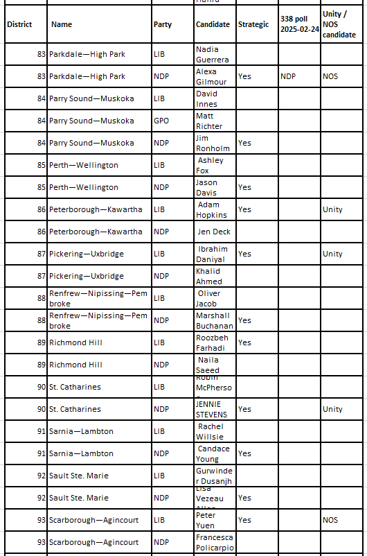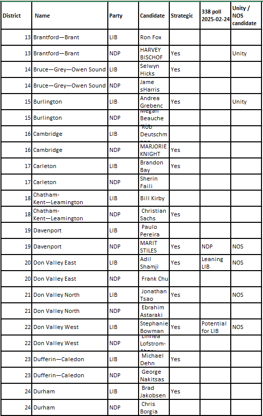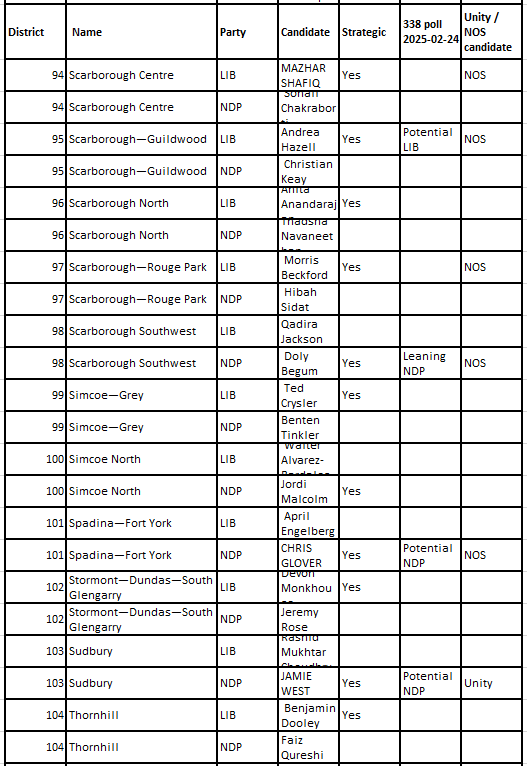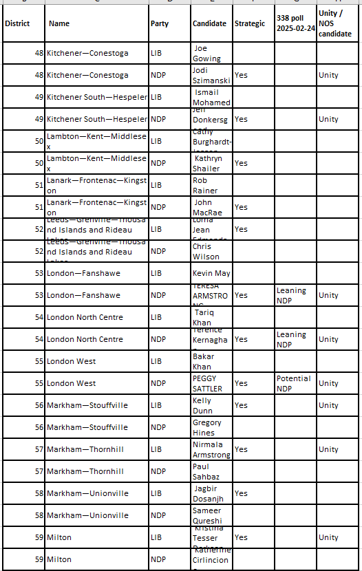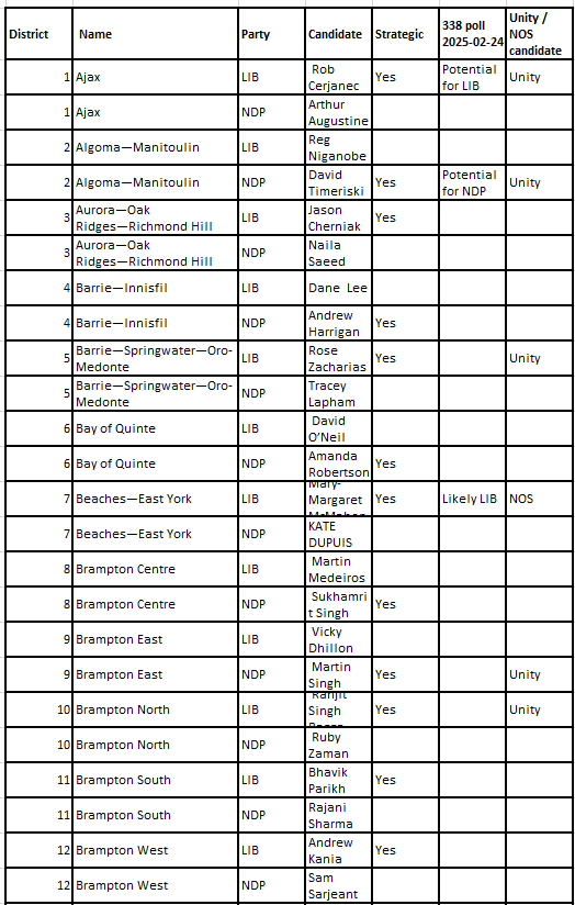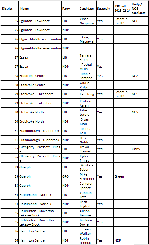Strategic Choices 2025 Ontario Provincial Election (Pre-election list) Ontario ridings with strategic choice for centre/left candidates.